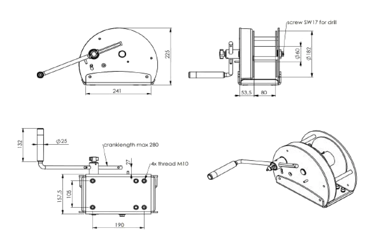 Für maximale Korrosionsbeständigkeit ist die Winde wahlweise in verzinkter Ausführung oder in Edelstahl 304 bzw. Edelstahl 316 erhältlich.