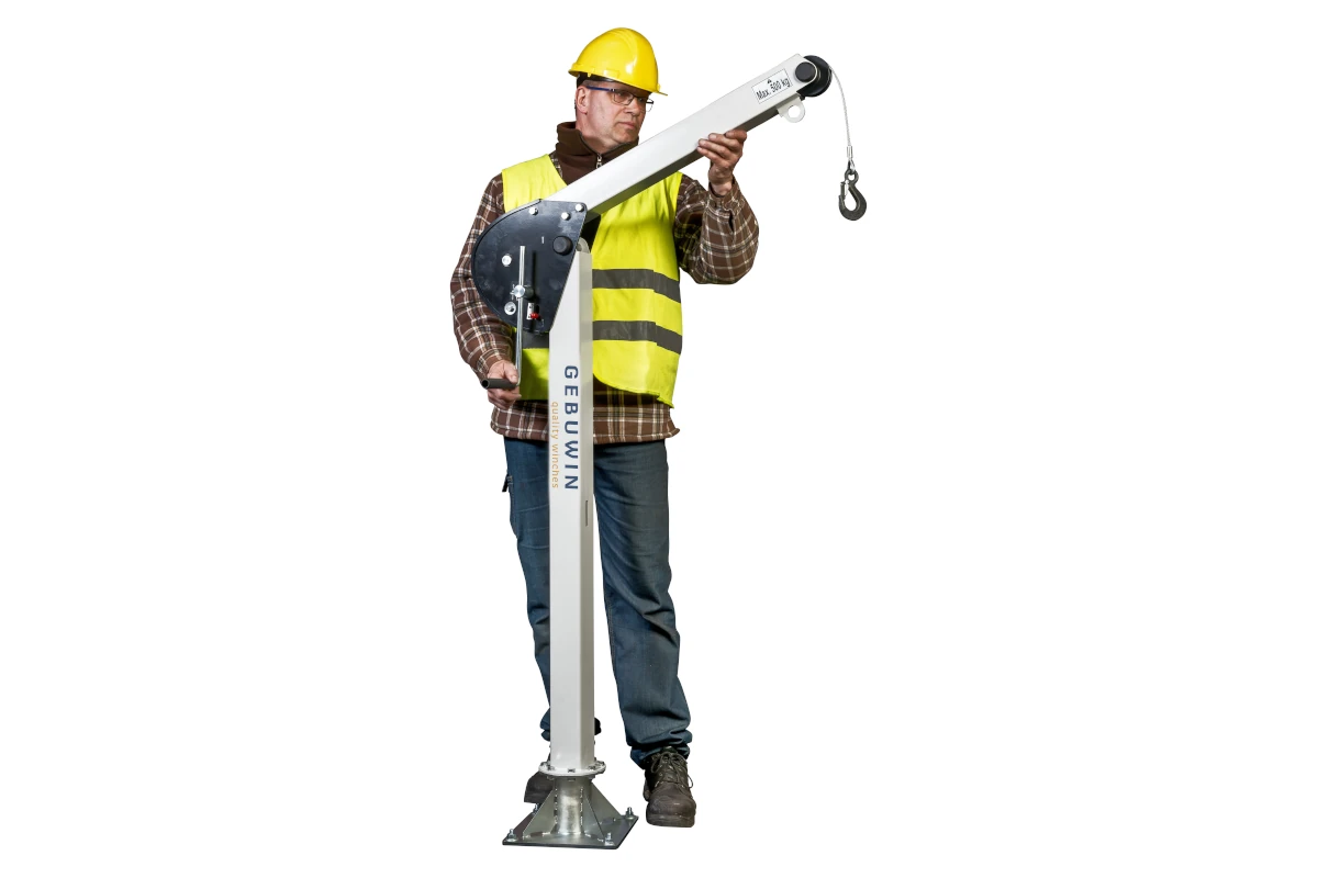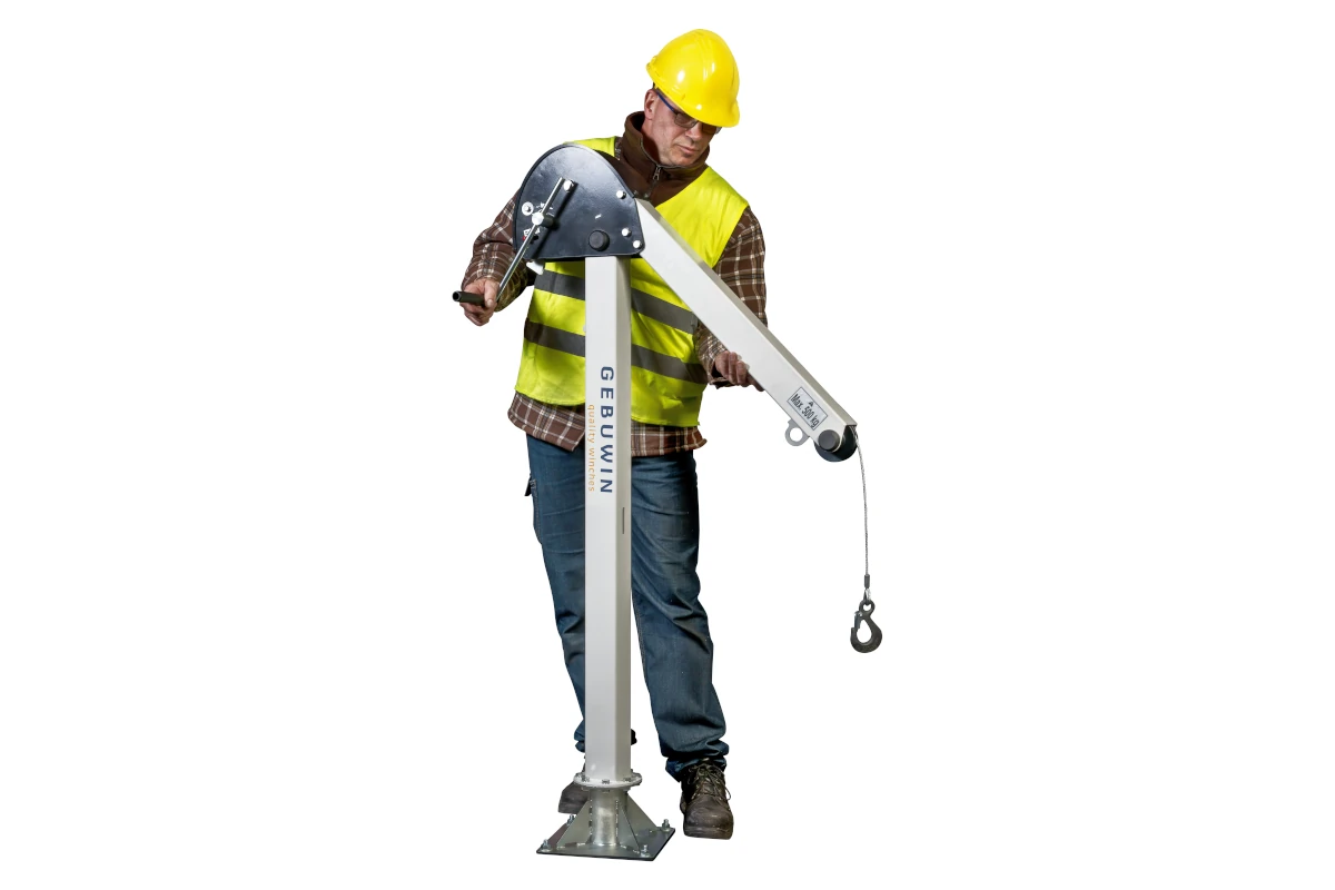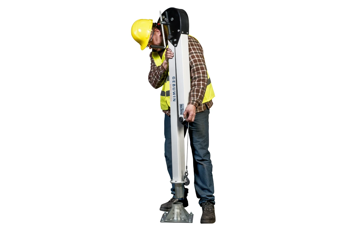 Der Gebuwin Davit-Drehkran ist speziell für das Heben von Gütern vor Ort entwickelt. Er ermöglicht effizientes Arbeiten ohne körperliche Belastung und überzeugt durch sein modernes Design. Dank leichtem Klappsystem ist der Hebedavit innerhalb weniger Sekunden einsatzbereit.