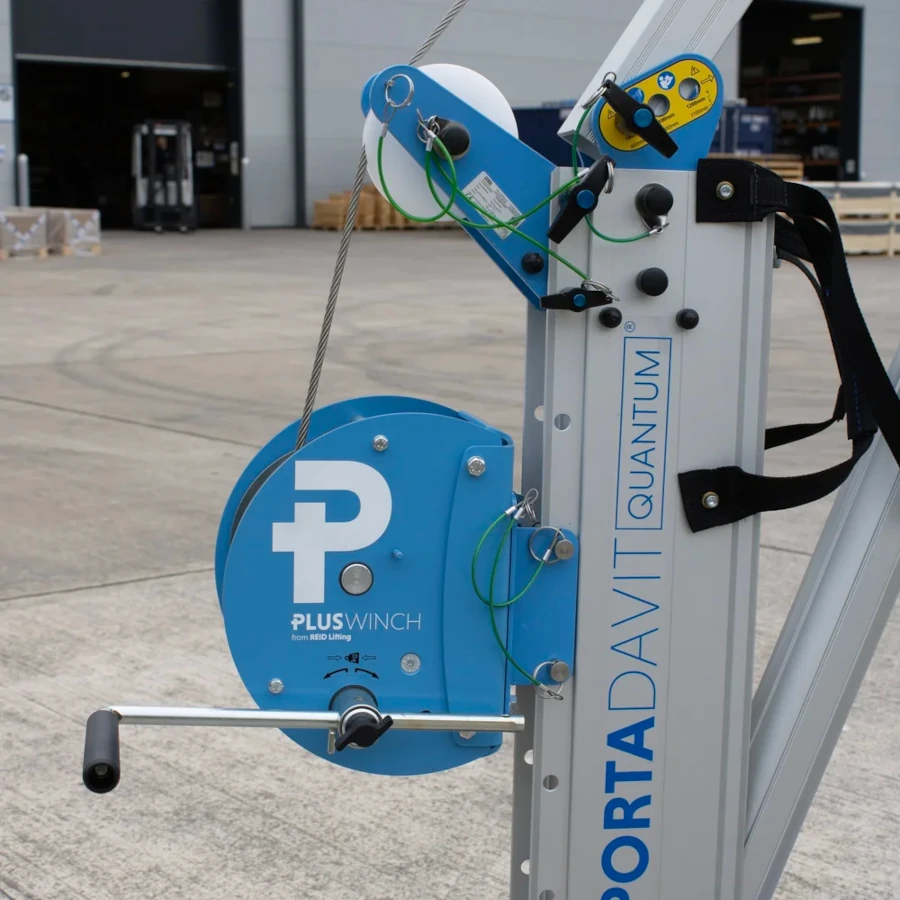 Die PlusWinch ist auf schnelle Einrichtung ausgelegt: Freilauf zum raschen Ausziehen des Seils, sauberer Wickelaufbau per Seilspanner und Montage über REID-spezifische Halterungen an Gantry- und Davit-Systemen – ideal für Wartung, Montage und wiederkehrende Hebeprozesse.