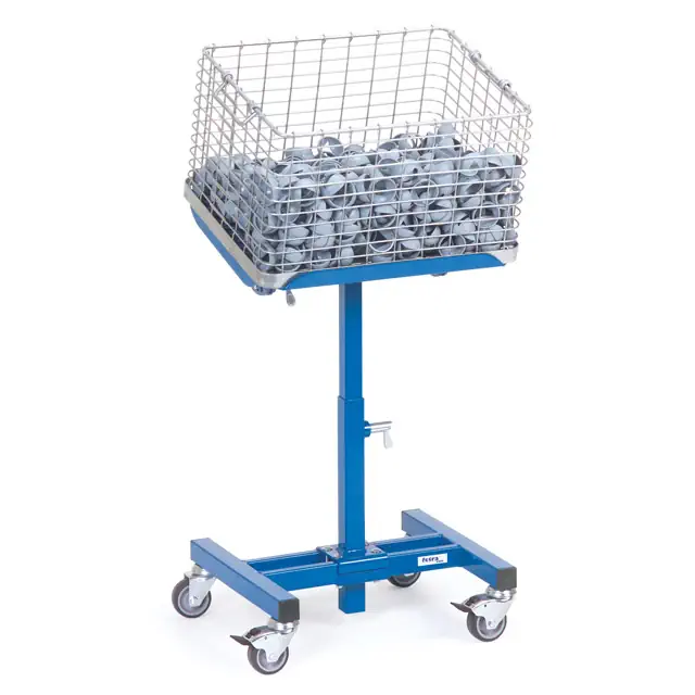 • Für Kunststoffkästen, Stahlblechkästen, Drahtkörbe usw., höhenverstellbar und fahrbar