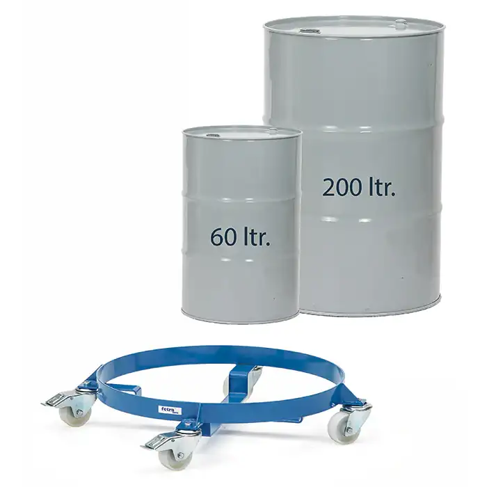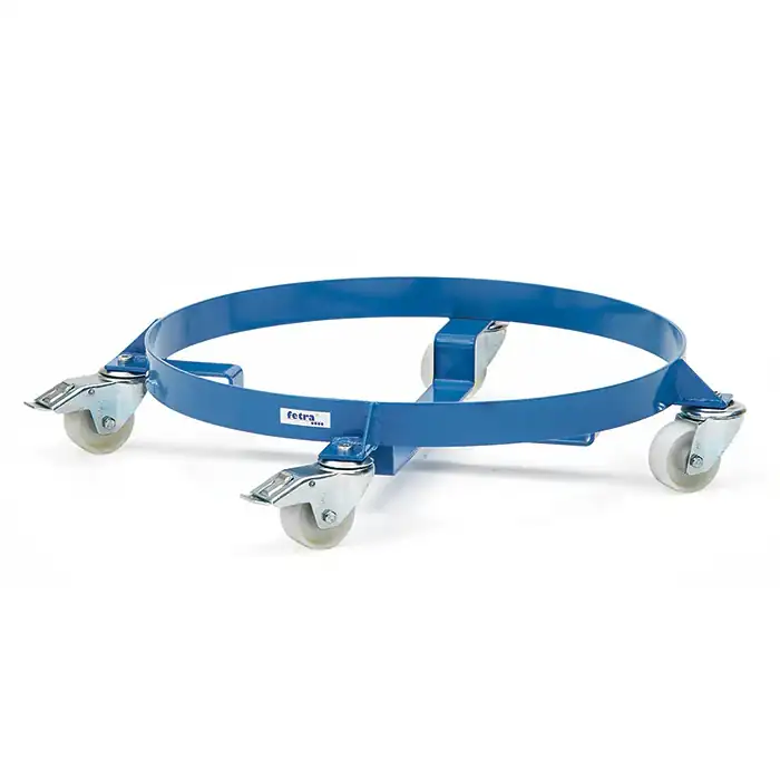 • Fassroller für stehenden Transport von Stahlblech-Fässern