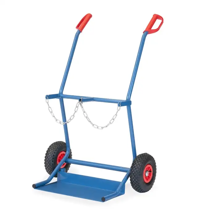 • Stahlflaschenkarre aus Stahlrohr, pulverbeschichtet blau RAL 5007