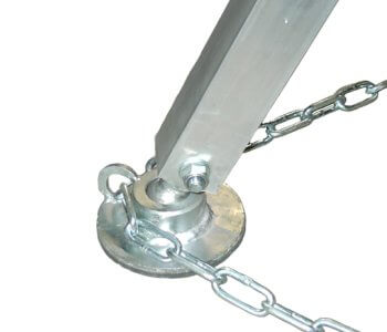 Um eine optimale Standfestigkeit auf glatten Untergründen zu erreichen, lässt sich eine Kette um die Füße legen. Hierfür sind spezielle Fussplatten erforderlich, durch deren Ösen die Kette gezogen werden kann. Ist eine Kette inklusive spezieller Fußplatten erwünscht, sollte diese möglichst zusammen mit dem Dreibock bestellt werden.