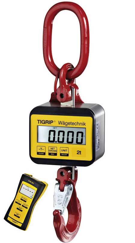 Die Kranhakenwaagen TKL und TKR sind kompakte Messgeräte zur Ermittlung von Lasten an Hebezeugen. Sie können unter Verwendung von Anschlagmitteln der Güteklasse 8 zwischen Haken des Hebezeuges und der anzuhebenden Last angeschlagen werden.