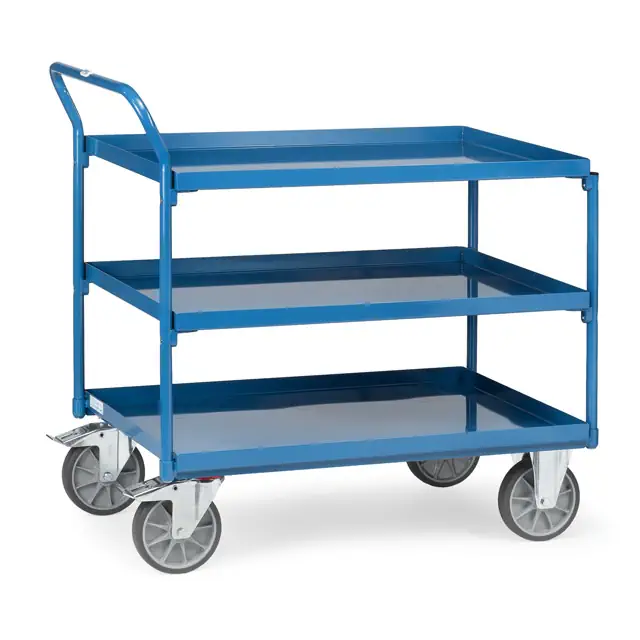 Der fetra Tischwagen mit Wanne wurde speziell für den Transport von gereinigten, nassen oder öligen Werkstücken entwickelt. Dank seiner stabilen Konstruktion und der hochwertigen Ausstattung ist er die ideale Lösung für Werkstätten, Instandhaltungsbereiche oder Produktionsumgebungen, in denen mit Flüssigkeiten gearbeitet wird. Durch die dicht ausgeführten Wannen gelangt kein Tropfen auf den Boden – für mehr Sauberkeit und Sicherheit im Arbeitsalltag.
