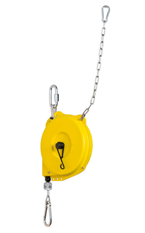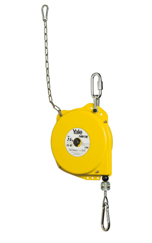 Der Federzug YFS zieht das Seil automatisch zurück in seine ursprüngliche Position, wenn keine entgegengesetzte Kraft aufgebracht wird. Um die Last in einer bestimmten Position zu halten, muss eine gewisse Kraft nach unten kontinuierlich ausgeübt werden. Der Federzug ist in einer gestanzten Stahlkonstruktion und einem pulverbeschichteten Gehäuse untergebracht, und verfügt über eine Seilführung aus verschleißfestem Kunststoff.