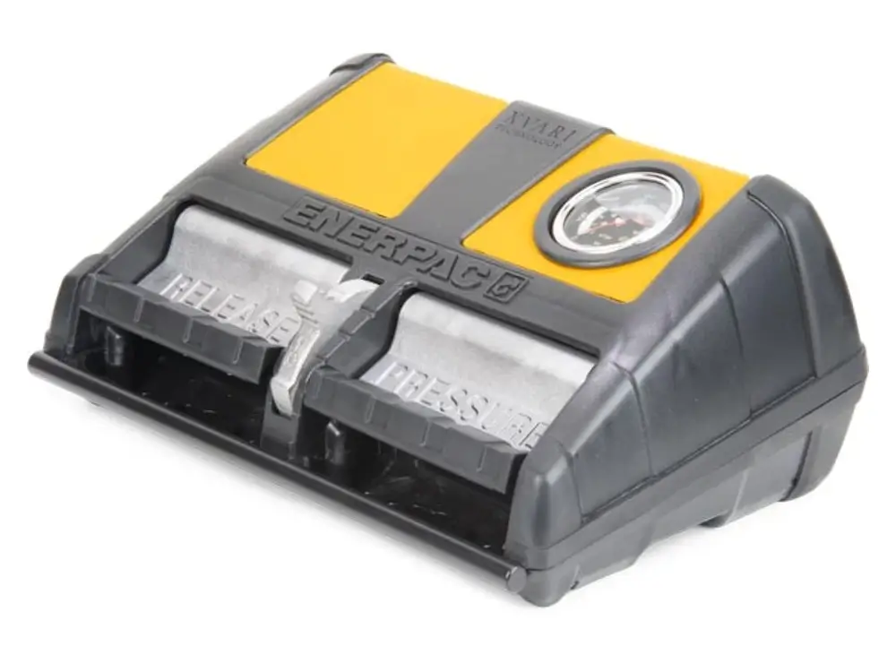 Für den Antrieb von doppeltwirkenden Zylindern und Werkzeugen wird das 4/3 Steuerventil benötigt. Dieses wird in der XA-Serie in Kombination mit dem 1- oder 2-Liter Tank, mit oder ohne Manometer angeboten.