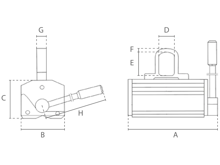 Masszeichnung von DELTA Lasthebemagnet QML 0.6 t