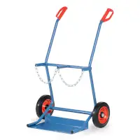 Die Fetra Stahlflaschenkarre überzeugt als zuverlässiger Helfer im sicheren Transport von Gasflaschen in Industrie, Werkstatt und Labor. Dank robuster Stahlrohrkonstruktion, einer Kettensicherung zur Flaschenfixierung sowie optionaler Ausstattung mit Schweißdrahtkorb für Werkzeuge oder Zubehör eignet sich diese Flaschenkarre mit Vollgummi-Bereifung ideal für den täglichen Einsatz. Je nach Anwendung stehen Modelle mit Vollgummi- oder Luftbereifung zur Verfügung – beide mit wartungsarmen Rollenlagern ausgestattet.