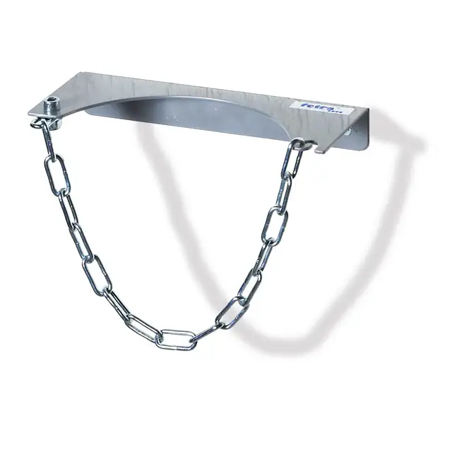Die Stahlflaschen-Wandhalterung von Fetra bietet eine sichere Lagerungsmöglichkeit für 1-3 Stahlflaschen unterschiedlicher Durchmesser. Die feuerverzinkte Stahlblechkonstruktion gewährleistet Langlebigkeit und Korrosionsschutz. Eine Kettensicherung verhindert das Umkippen der Flaschen, während vorgefertigte Bohrungen eine einfache Wandbefestigung ermöglichen, was eine sichere und platzsparende Aufbewahrungslösung für Stahlflaschen in Werkstätten oder Lagerräumen bietet.
